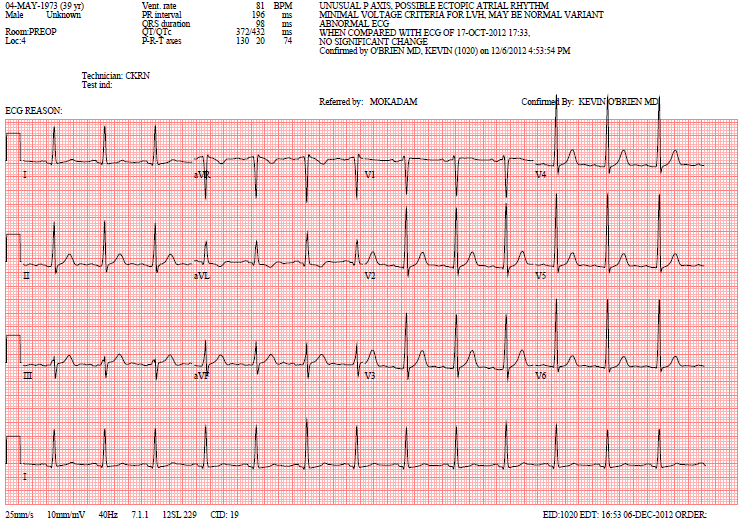 - Heart rate regular 70, BP 137 / 72 mm Hg Wt 133 kg